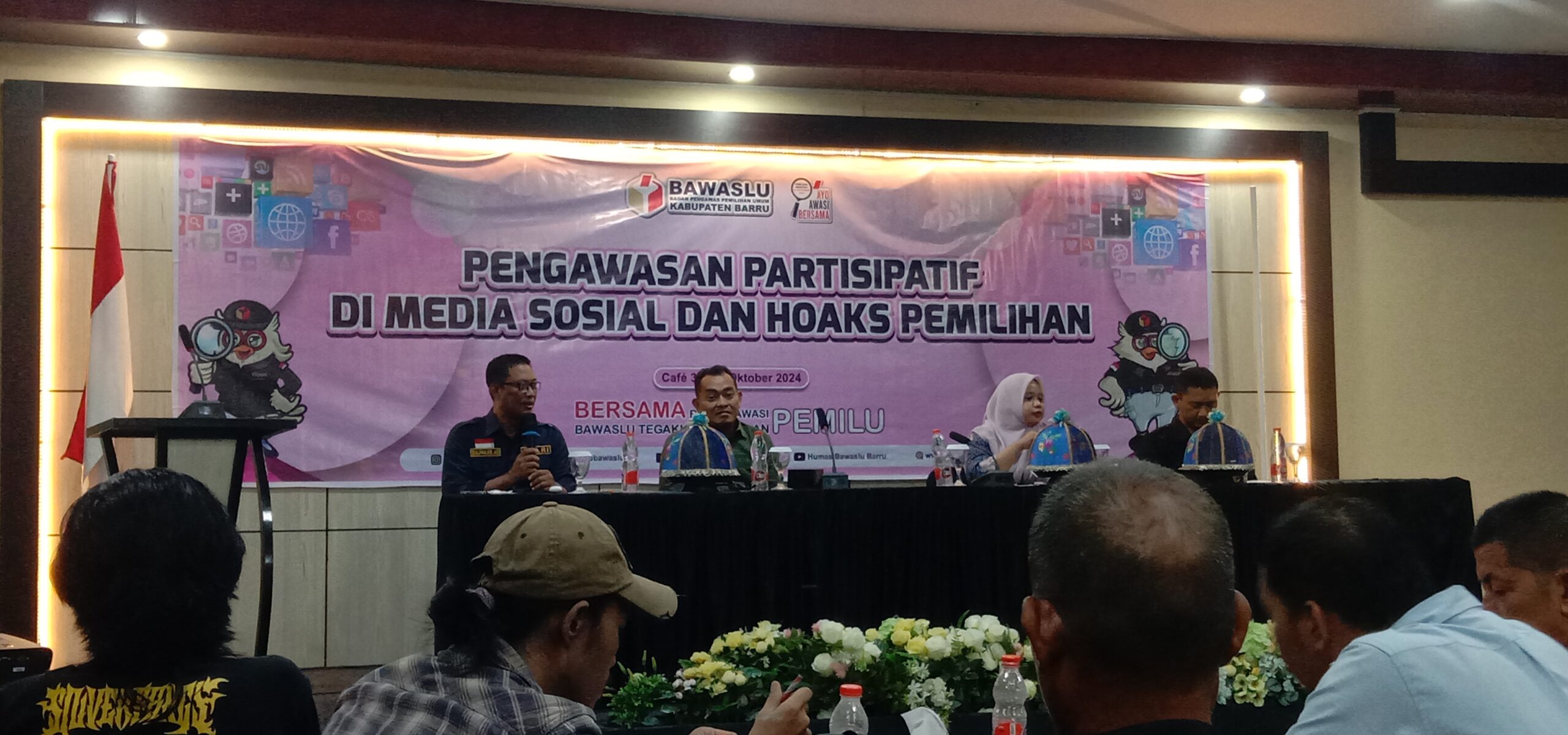 BARRU-Kegiatan sosialisasi pengawasan partisipatif di media sosial dan hoax jelang pemilihan kepala Daerah yang digelar Badan Pengawas Pemilu (Bawaslu) Kab.Barru bertempat di Cafe 3R pada Kamis (03/10/2024).