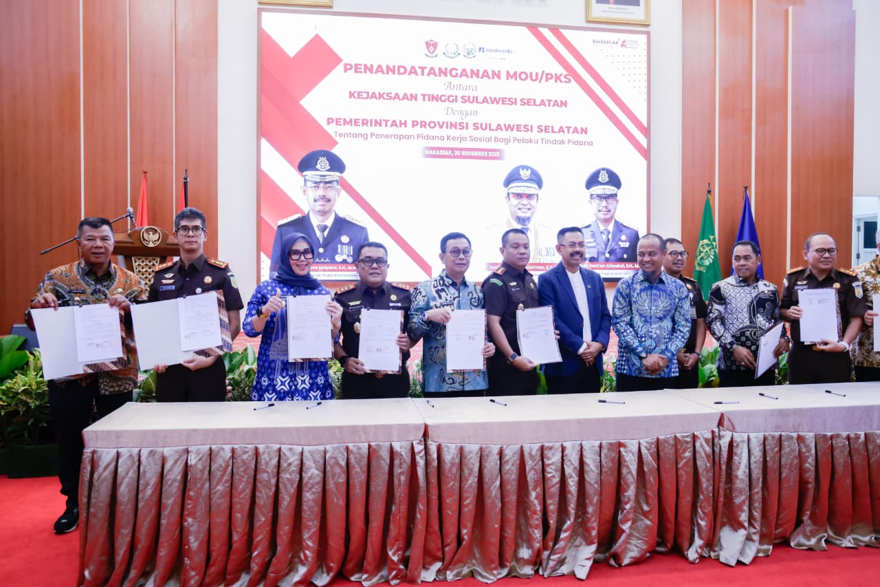 Penandatanganan tersebut turut disaksikan Jaksa Agung Muda Tindak Pidana Umum (Jampidum) Kejagung, Prof. Dr. Asep Nana Mulyana, SH., M.Hum., Gubernur Sulawesi Selatan Andi Sudirman Sulaiman, serta Kajati Sulsel Dr. Didik Farkhan Alisyahdi. Kegiatan berlangsung di Aula Asta Cita Rumah Jabatan Gubernur Sulsel, Makassar, Kamis (20/11/2025)