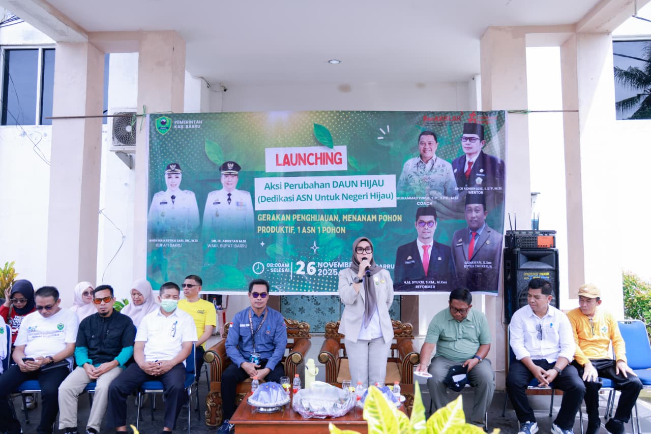 AK77NEWS.COM — BARRU | Bupati Barru, Andi Ina Kartika Sari, S.H., M.Si., resmi meluncurkan Program DAUN HIJAU (Dedikasi ASN untuk Negeri Hijau) pada kegiatan yang digelar di Halaman Kantor Dinas Kesehatan Kabupaten Barru, Rabu (26/11/2025).