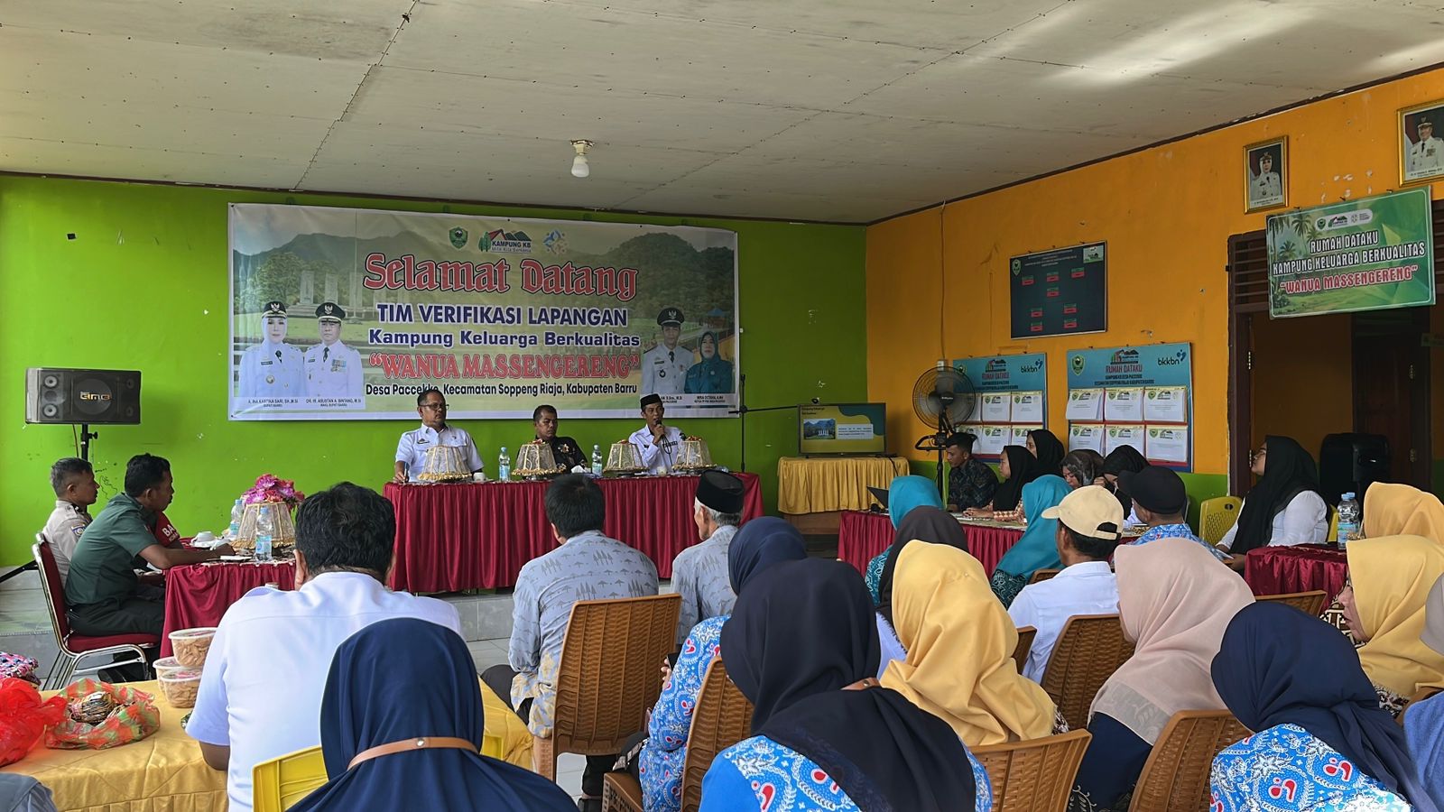 Rombongan tim verifikasi disambut hangat oleh Kepala Dinas PMD PPKB P3A Kabupaten Barru Jamaluddin,S.Sos, M.Si, Kepala Desa Paccekke Dahlan, S.Sos., M.Si., beserta jajaran, Babinsa, Bhabinkamtibmas, Badan Permusyawaratan Desa (BPD), serta Kelompok Kerja (Pokja) Kampung KB.