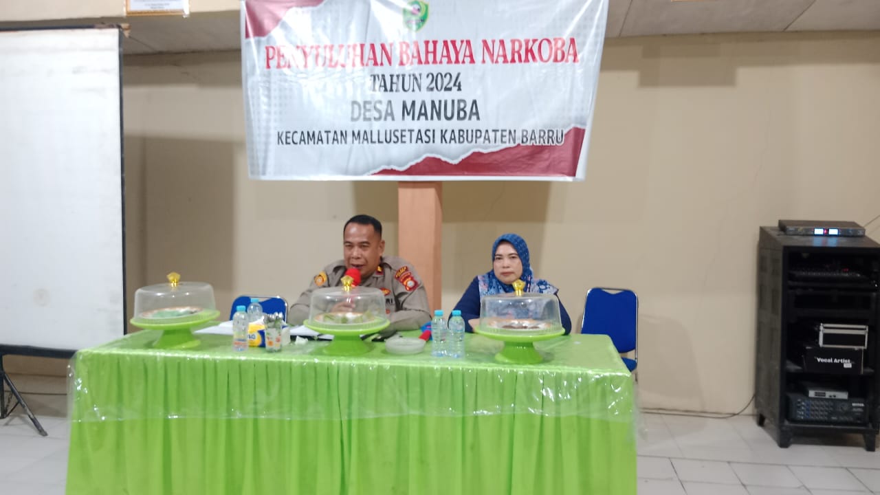 BARRU -Penyuluhan bahaya Narkoba dan penyampaian pesan kamtibmas di Desa Manuba, Kecamatan Mallusetasi, Kabupaten Barru, Jumat (20/09).
