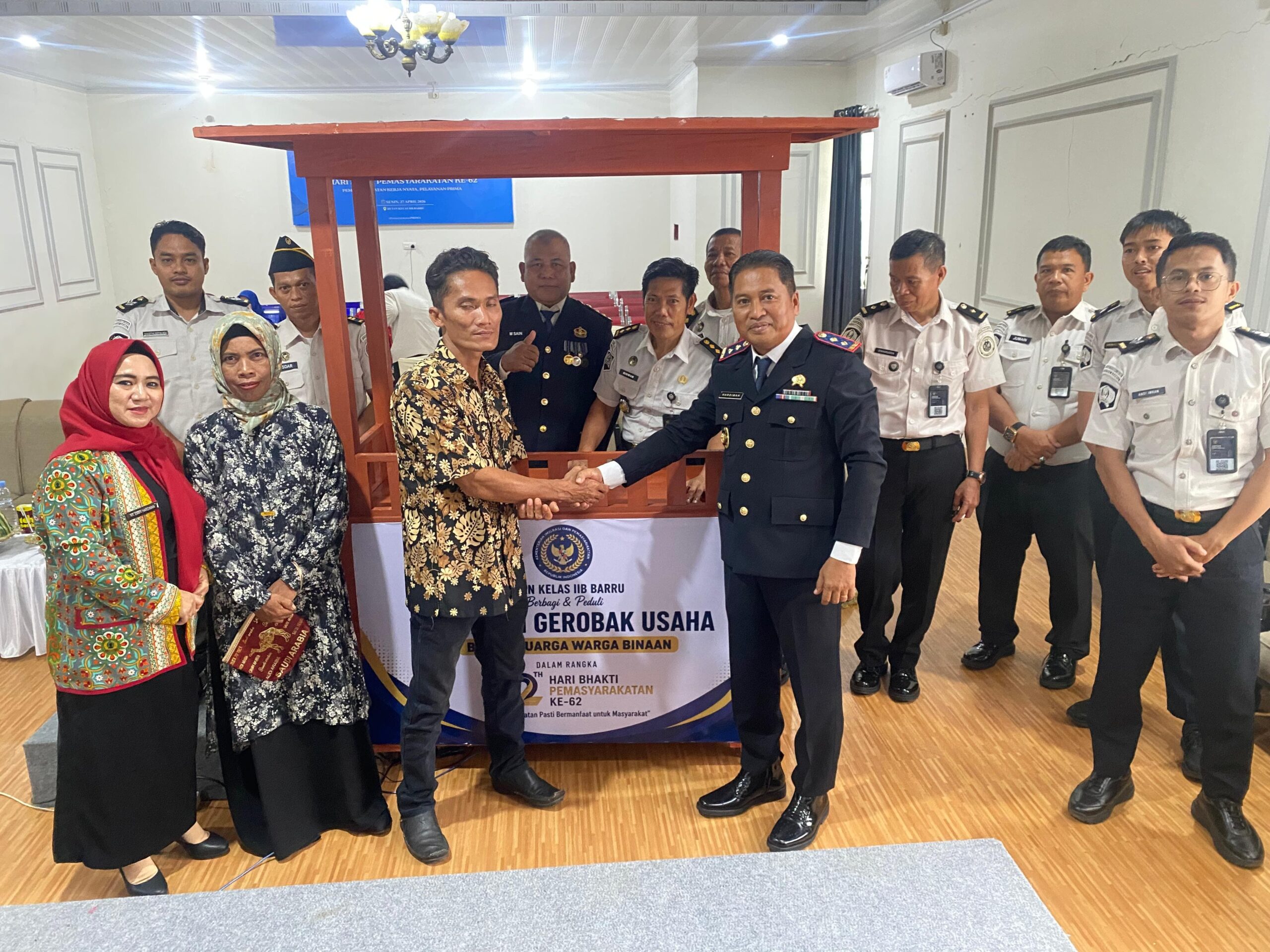 Barru, AK77NEWS.COM — Tak sekadar seremonial, puncak Hari Bakti Pemasyarakatan (HBP) ke-62 di Rutan Kelas IIB Barru jadi bukti nyata pembinaan. Gerobak usaha hasil karya warga binaan diserahkan untuk keluarga mereka, Sabtu (26/4/2026).