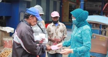 Ketua PKK Barru Sisir Pasar Mattirowalie Bagikan Masker