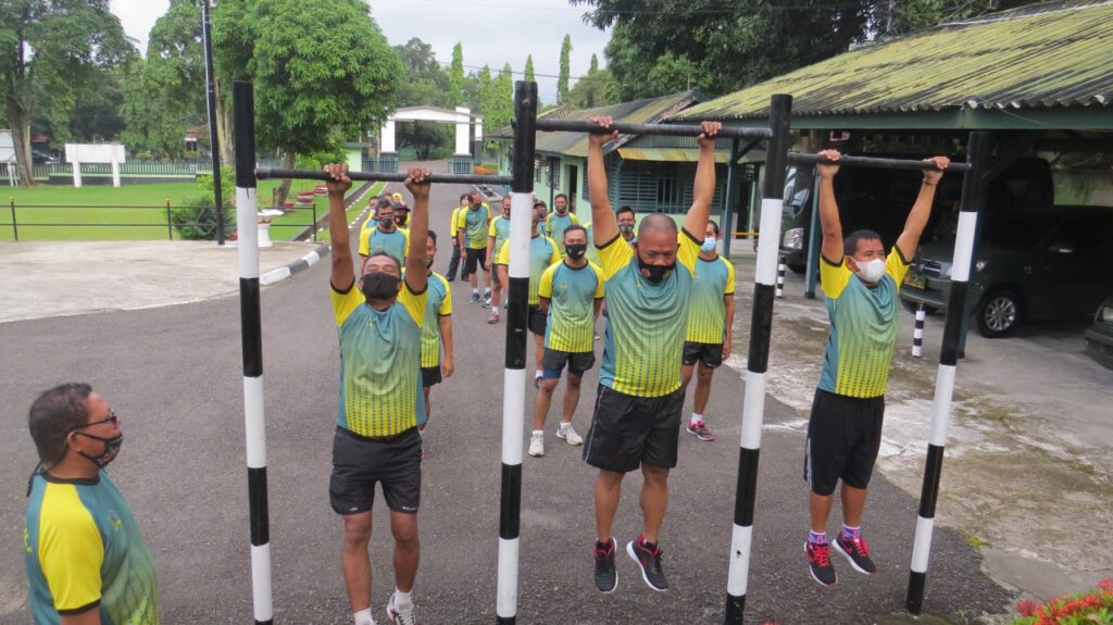 Pelaksanaan apel pagi dan dilanjutkan dengan kegiatan aerobik dalam rangka persiapan samapta periodik Personil Kodim 1405/Mlts. Kegiatan ini bertujuan untuk menjaga Ketahanan Tubuh, dan Imun pada masa Pandemi Covid-19, kegian ini diLakasanakan di Makodim 1405/Mlts.