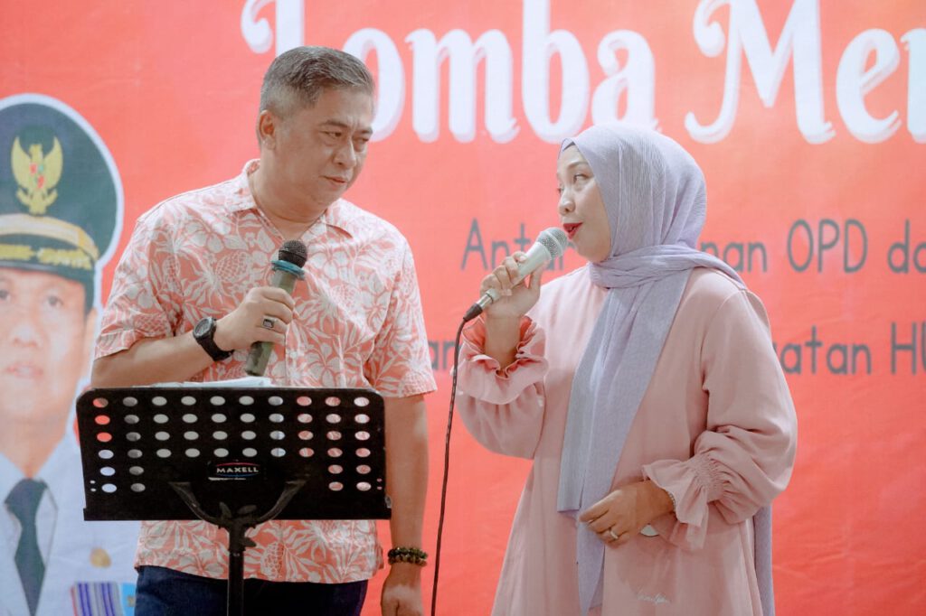 AK77.Barru-Lomba nyanyi antar Organisasi Perangkat Daerah (OPD) Pemda Barru dan Istri dalam menyemarakkan Hari Ulang Tahun (HUT) Kemerdekaan RI ke 77 berlangsung di Baruga Singkeru Ada E Rujab Bupati Barru, Ahad (14/08/2022).
