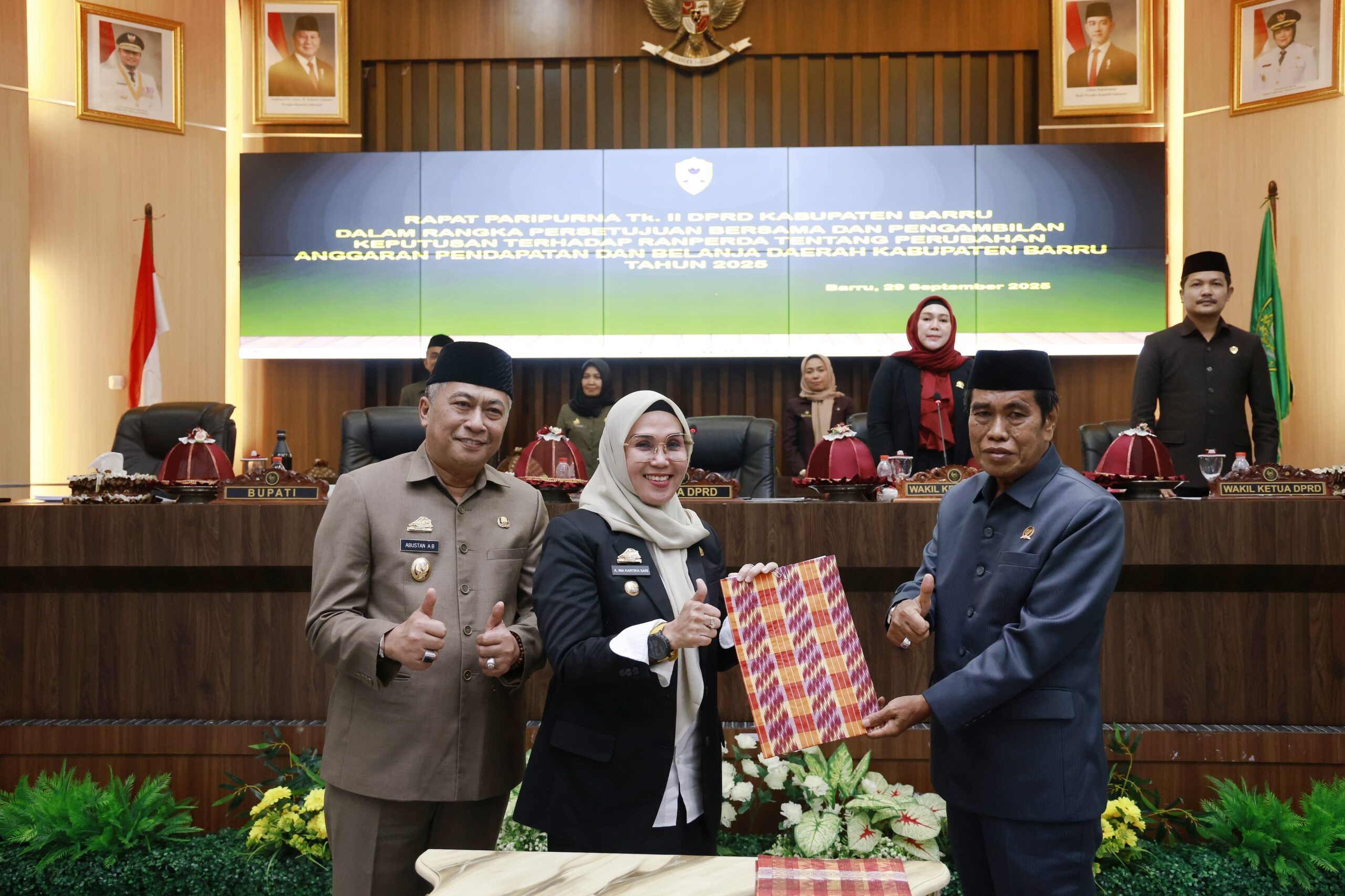 Penandatangan keputusan bersama terhadap APBD-P tersebut dilakukan Bupati Barru A. Ina Kartika Sari, SH. M. Si bersama Ketua DPRD Barru Drs. H. Syamsuddin Muhiddin. M. Si diruang Sidang DPRD Barru, Senin 29/9/2025.