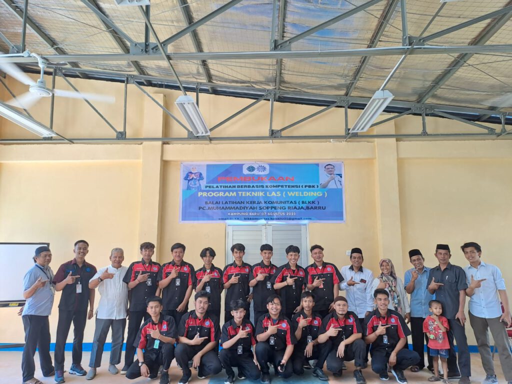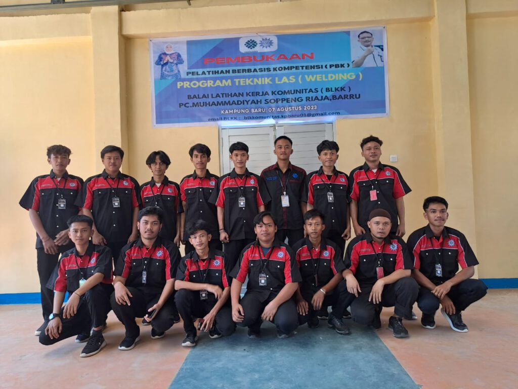 AK77Barrunews-Pimpinan Cabang (PC) Muhammadiyah Soppeng Riaja melakukan pelatihan berbasis kompeten program teknis las di BLKK Kampung Barru,Senin (7/08).
