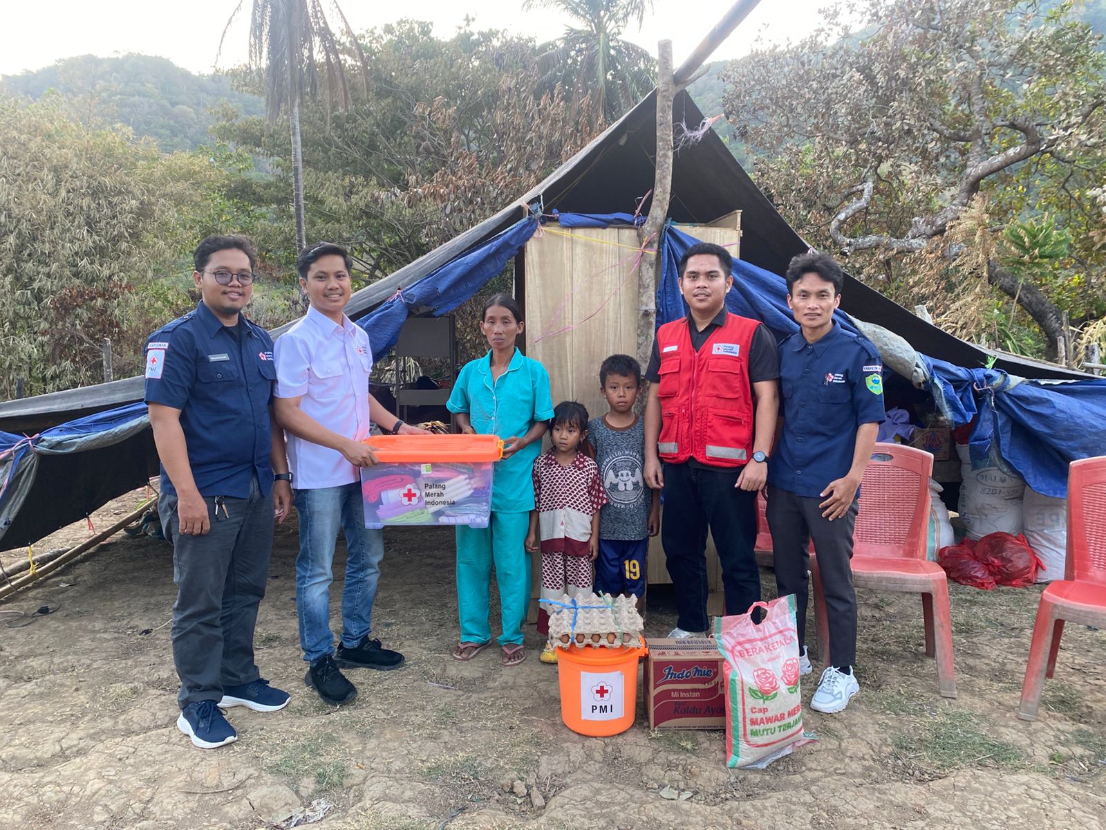 Dalam kunjungan tersebut, PMI menyerahkan bantuan berupa family kit dan sembako untuk meringankan beban korban.
