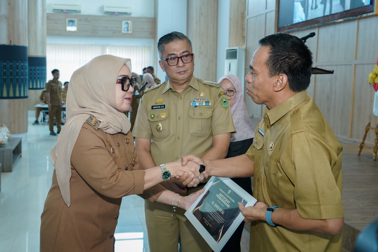 Selain penyerahan sertifikat penghargaan, turut disampaikan ucapan selamat memasuki masa purna bakti kepada dr. Amis Arifai. Pemerintah daerah berharap masa purna tugas ini menjadi fase baru yang tetap produktif dan penuh keberkahan.