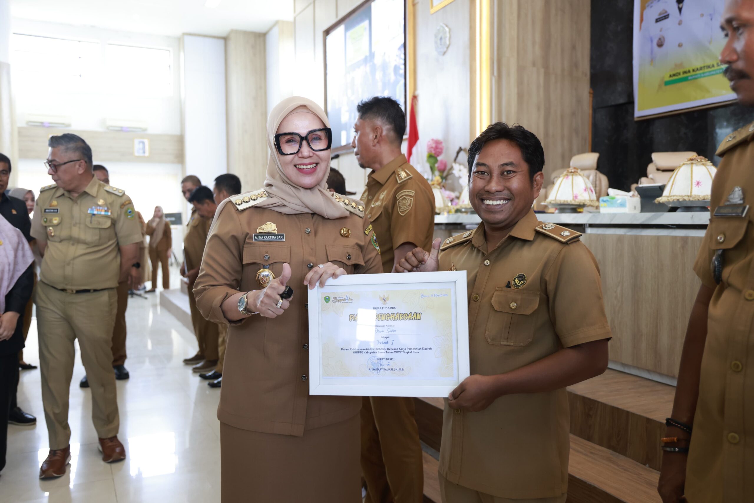 Penghargaan tersebut diserahkan langsung oleh Bupati Barru, A. Ina Kartika Sari, SH.,M.Si kepada Kepala Desa Siddo, Khairul Rijal Majid, ST., N.LP di Gedung Tower Lt.6 Kantor Bupati Barru, pada selasa (31/03/2026)
