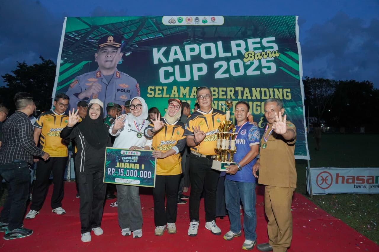 Bupati Barru menyampaikan apresiasi tinggi atas terselenggaranya Kapolres Barru Cup 2025 yang untuk pertama kalinya digelar dan berjalan tanpa gangguan keamanan. Ia secara khusus mengucapkan selamat kepada Putra Siga Pujananting atas pencapaian sebagai juara pertama.